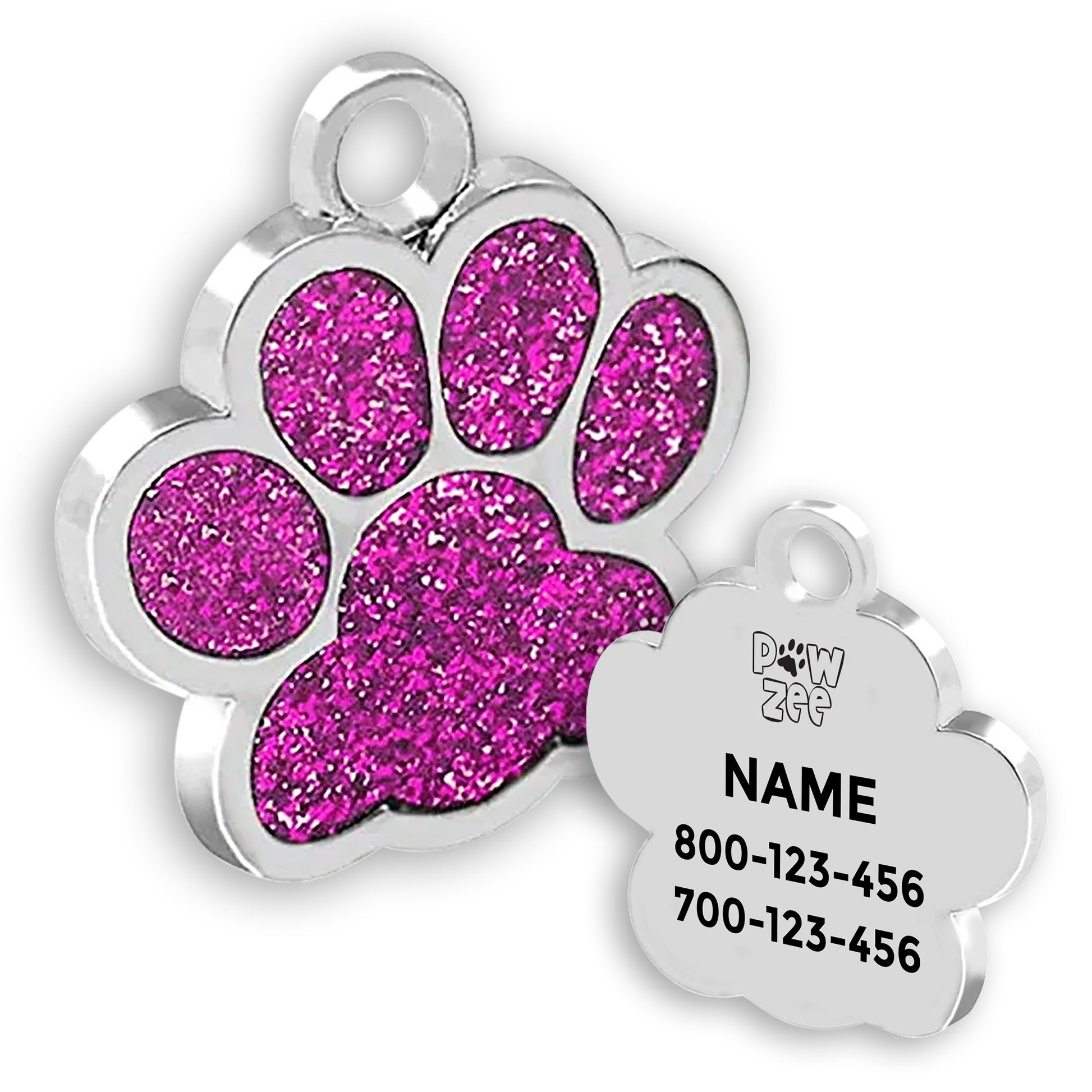 Buy our glittering shop dog tags now--because safety must shine like your pet!