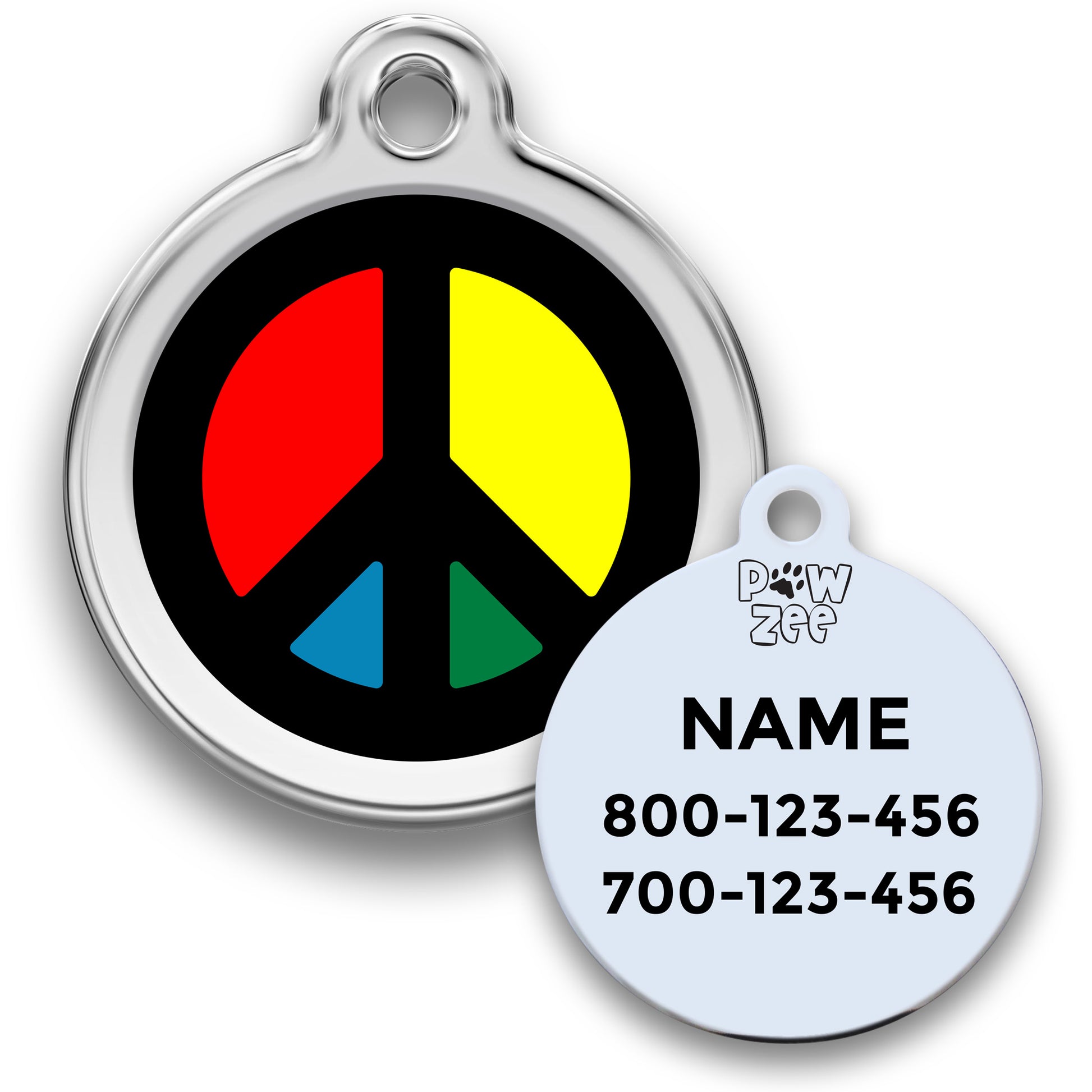 The peace sign dog tag is crafted of the finest stainless steel with enamel accents, which are designed to wear out after years of careless play and wear. Every detail, including those of your pet, is engraved so deeply in the metal that they are as clear as possible and cannot be erased. These engravings do not fade away as in the case of printed alternatives, and this ensures dependable readability regardless of the adventure.